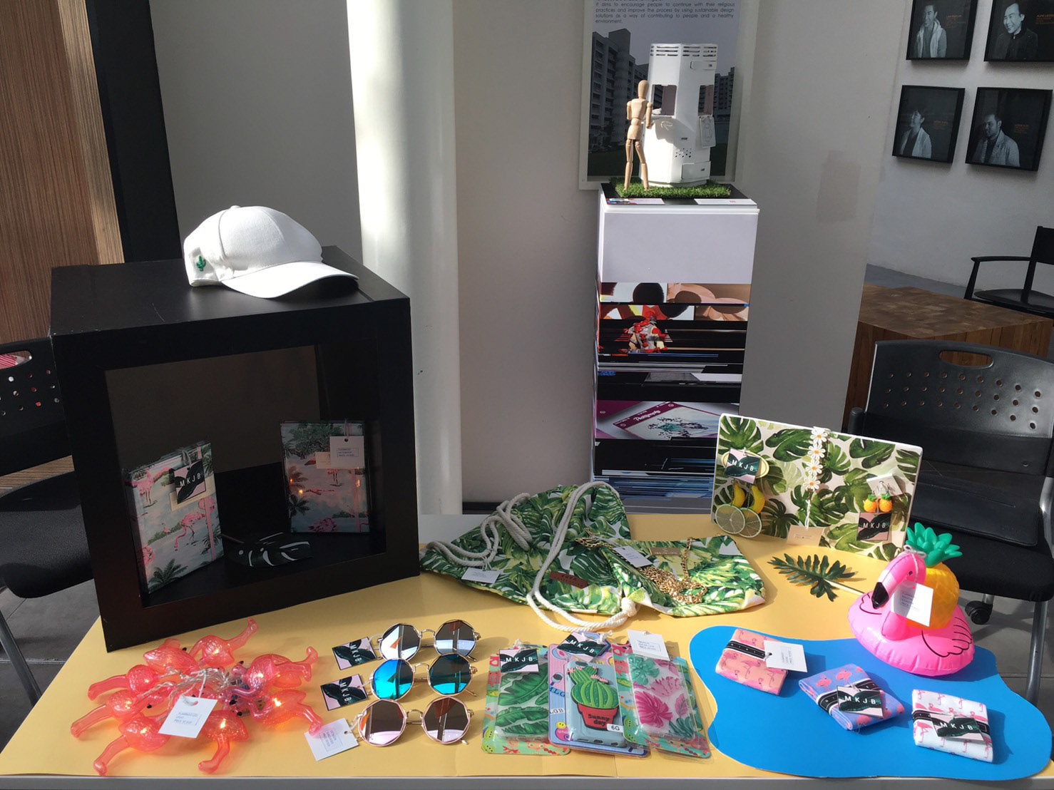 Delivering lifestyle trendy products associated with tropics, such as tropical leaves patterns and flamingos. The collection cover variety of cate- gories including; Notebook, earrings, bags, sunglasses, phone cases, socks, pillow, led light, socks, caps, coaster. As this collection is targeting college students, we want to provide basic goods that they can use easily while keeping it trendy and suit the Singapore climate.